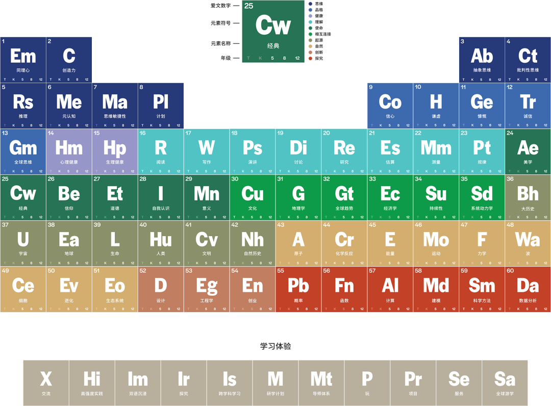 “爱文世界元素”注重激发学生建立事物间的联系,清晰地阐述了适用于爱文所有校区的核心教学目标。这一套目标定义和描述了爱文各个校区毕业生的基本学习成果,保证了不同校区在教学内容、教学方法等方面的高度一致性。这也保证了学生可以在不同的校区之间自由转换,汲取前沿教育滋养的同时,与当地校区快速融合。
