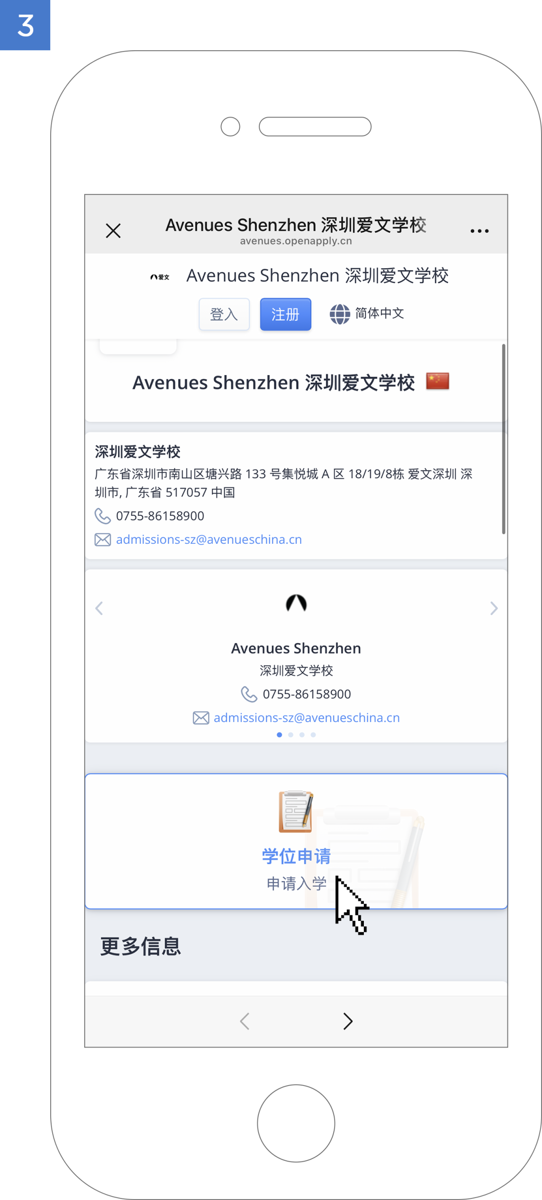 家长完成在线申请步骤后,招生老师将与申请家庭联系并安排一对一面对面沟通时间。